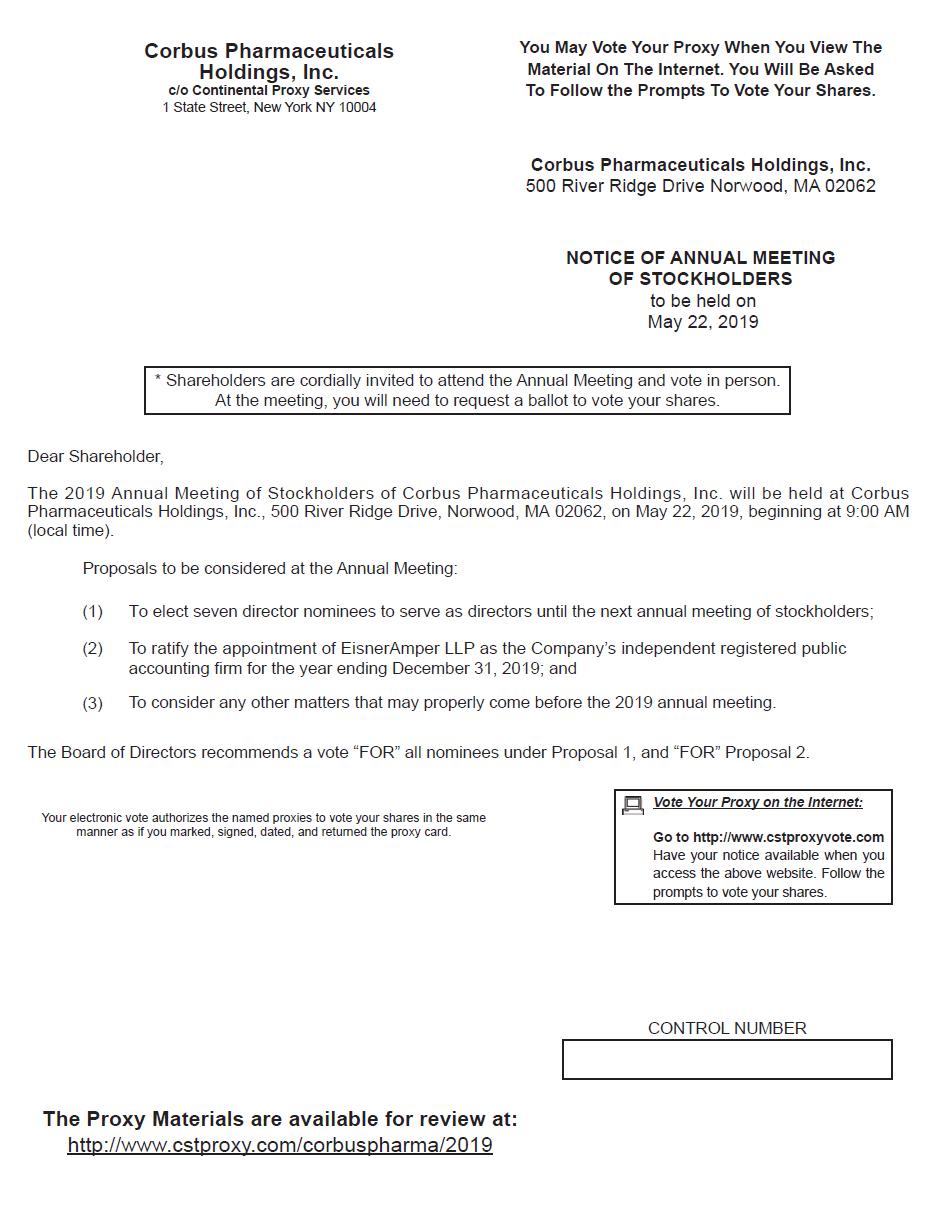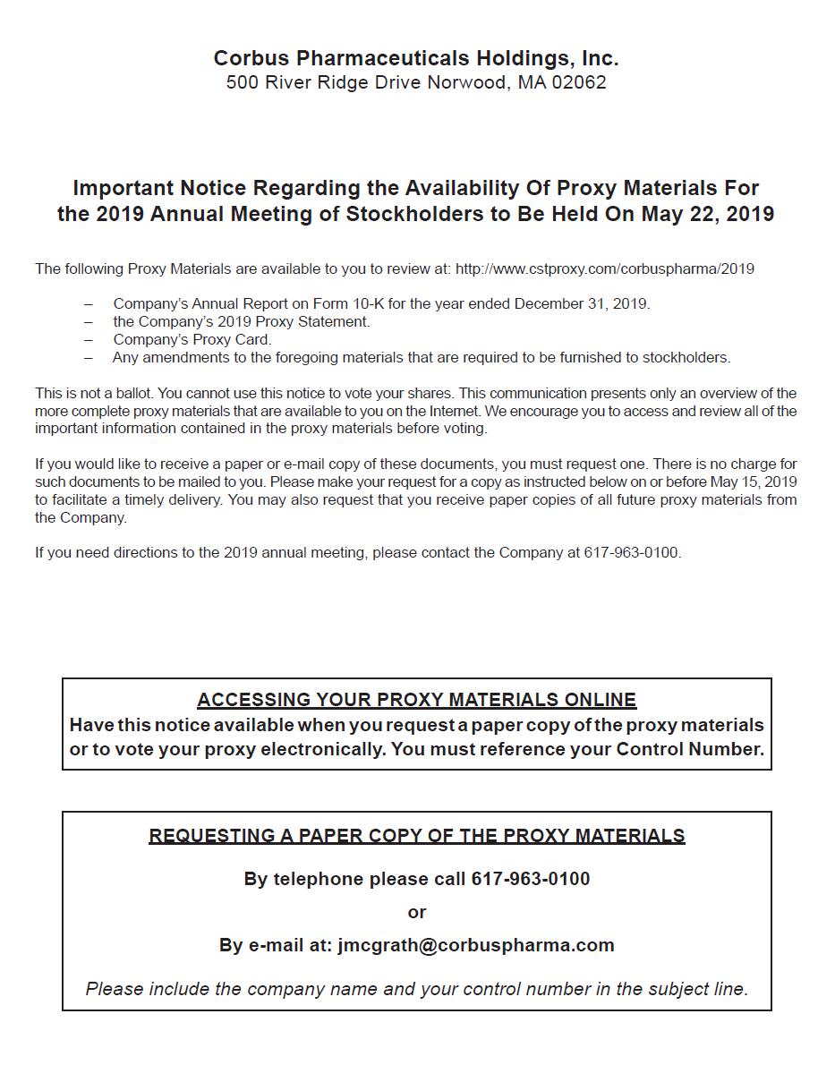 CORBUS PHARMACEUTICALS HOLDINGS, INC.